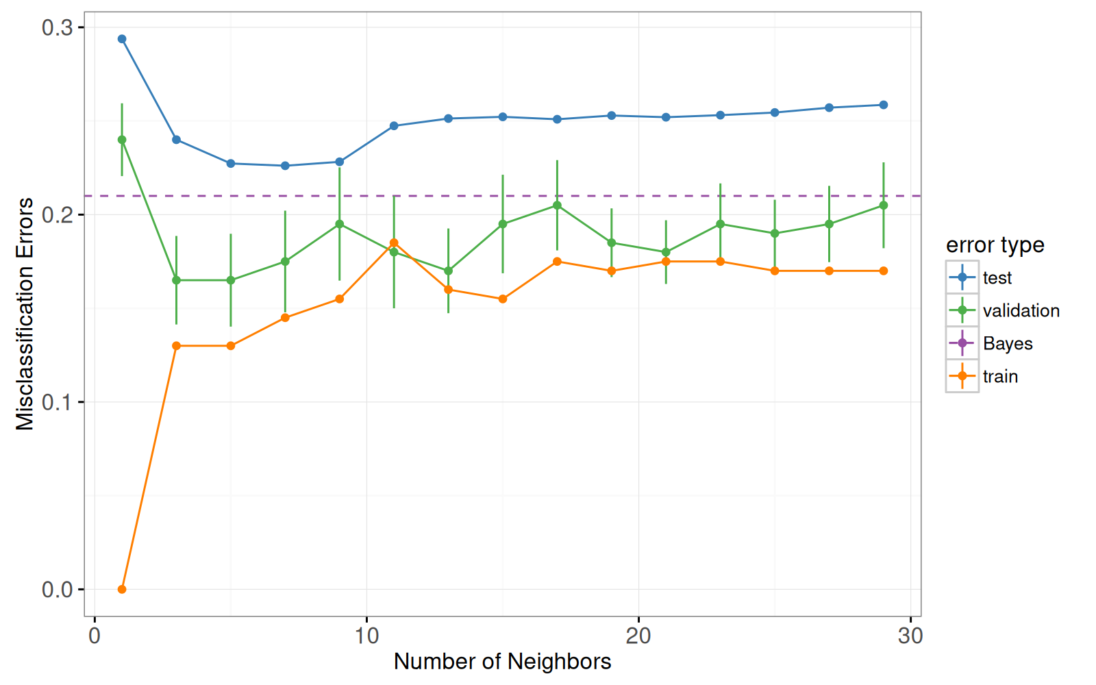 For other values of `neighbors`, some predictions are correct, and others are incorrect, so we need more rows of data in the TSV files, for example: